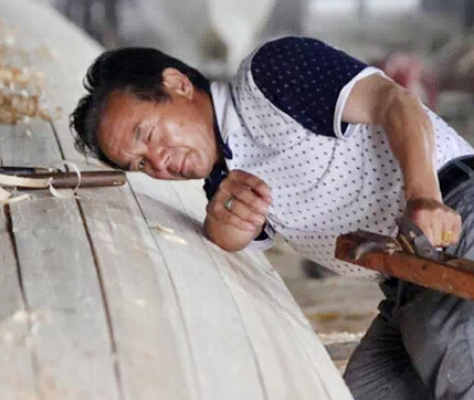 廠長(zhǎng)許桂生從事龍舟制作已有30余年歷史,為繼承祖?zhèn)髦圃忑堉鄹挥幸欢ǖ慕?jīng)驗(yàn)